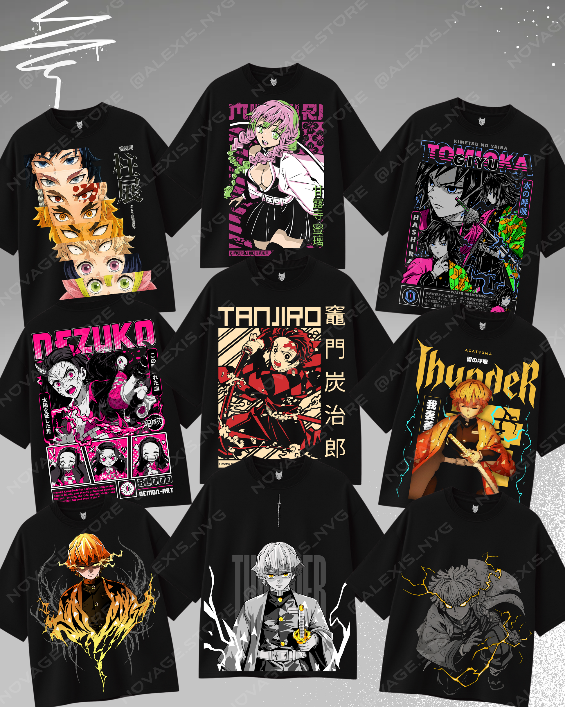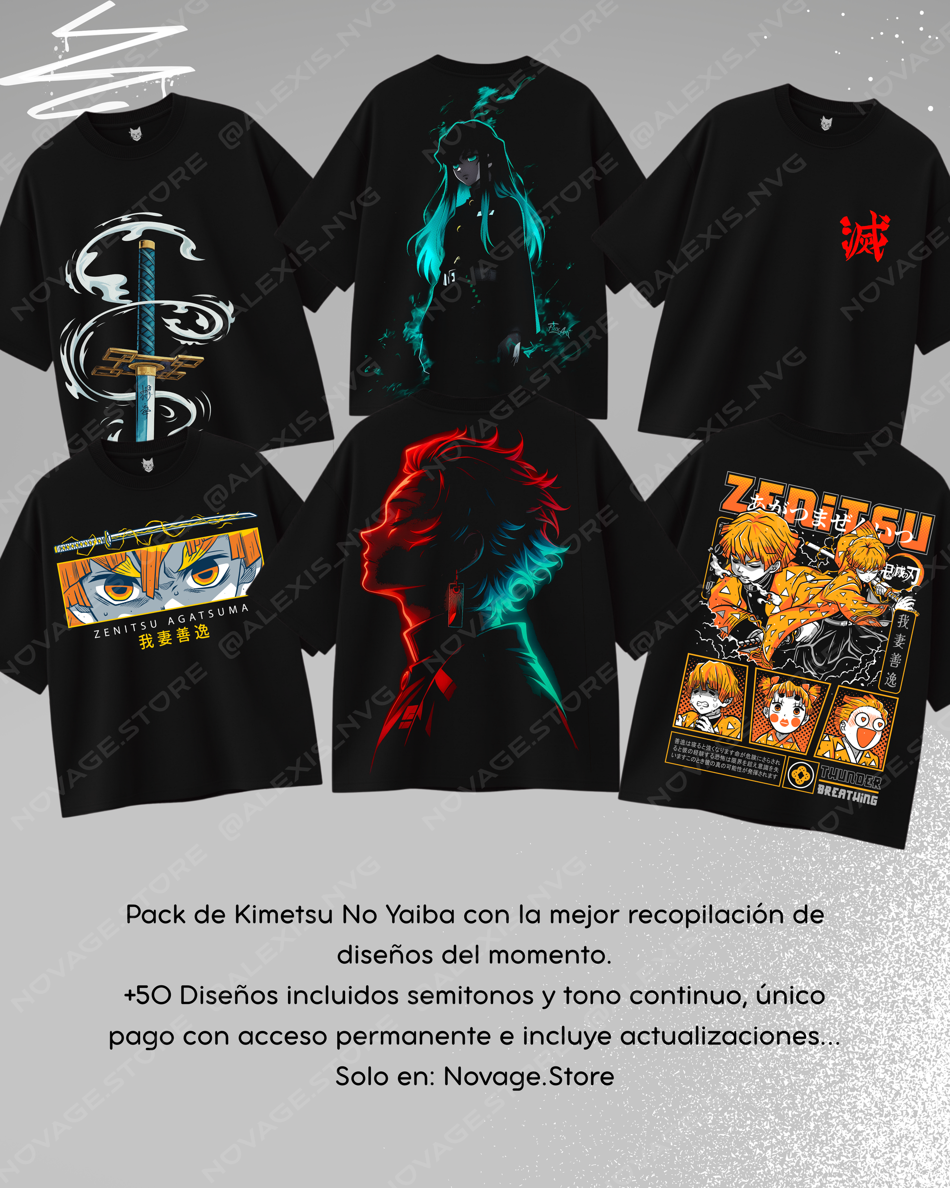 Más de 50 diseños inspirados en Kimetsu no Yaiba, listos para sublimar o imprimir en DTF O DTG. Incluye personajes icónicos, estilos urbanos y archivos en PNG SIN FONDO ¡Perfecto para crear tus playeras o productos personalizados con calidad profesional!